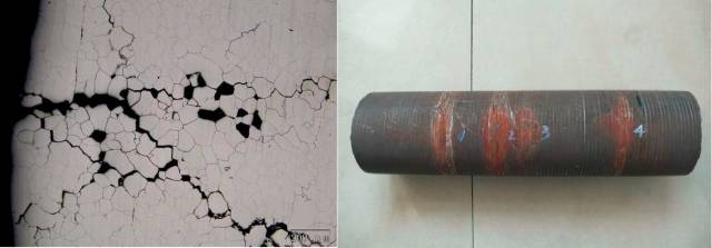 例如:某公司合成氨廠爐的工藝氣預(yù)熱管因?yàn)榫чg腐蝕引起的開裂,發(fā)生泄漏事故。預(yù)熱管出現(xiàn)晶間腐蝕是因?yàn)閵W氏體不銹鋼晶界析出Cr23C6,在管內(nèi)Cl-作用下管子短期出現(xiàn)晶間腐蝕開裂。